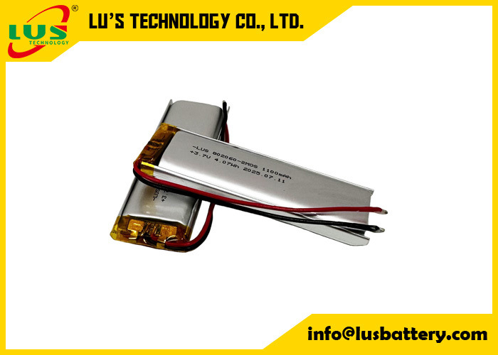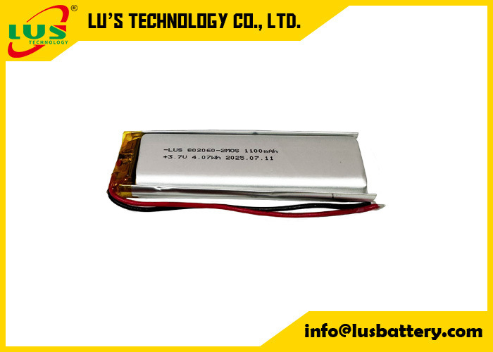 De 802060 lithium batterij elke cel levert een nominale 3.7V en 1100mAh oplaadbare batterij